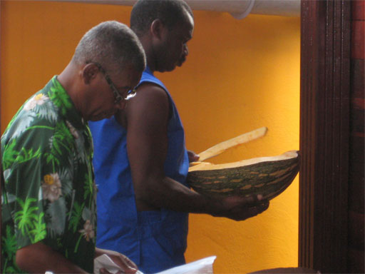 I have promised the Queen's namesake to avoid working-on-boats stories but we have in all honesty done little else since our arrival. Excepting, of course, for a great deal of lying around reading, visiting friends, swimming, shopping in the markets and watching old episodes of Battlestar Galactica. Susie has developed a lively computer repair practice which has gained us entre to a number of excellent boats. We joined the Saint Lucia Yacht Club's farewell parade for the World ARC's gala departure for their around-the-world journey from Saint Lucia to Saint Lucia. 14 months. It was fun meeting all the excited sailors making last minute preparations and we learned at least one handy trick: a creme brulee torch doubles as a rope/hose heater on board. We took our Swiss friends on the parade/sail to Castries and had a wonderful lunch on the way. Later in the week, we took a newly wed Aussie couple and their aunt and uncle for a sail around the north end of the island. More wonderful food and conversation.