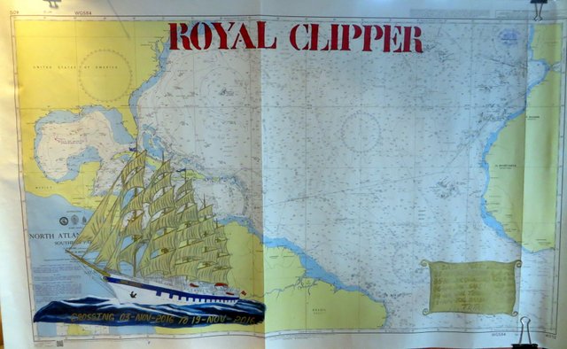 We first met the Royal Clipper at anchorages in the Caribbean. In the winter she is a regular visitor in Bequia, St. Lucia and the Saints. In the Summer, she sails the Mediterranean Sea. This passage was the annual delivery from her summer home to her winter home. As a delivery, she is on a tight schedule and if the wind is insufficient, she motors or motor sails. We have met other passengers who sailed most of the way but that was not our luck. Most of the way the winds were light and we made fulsome use of the "iron genny."